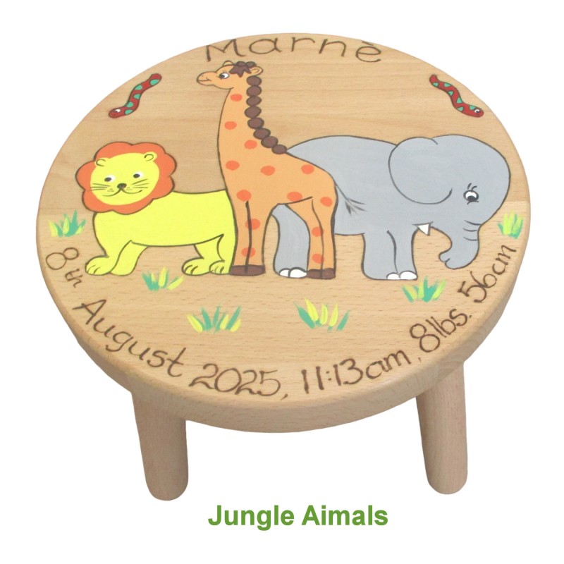 This traditional 3 legged round stool is made from solid beech wood and is available in several hand painted brightly coloured designs. We can personalise the stool making it a great keepsake gift for a new born baby, christening, birthday or any special occasion.