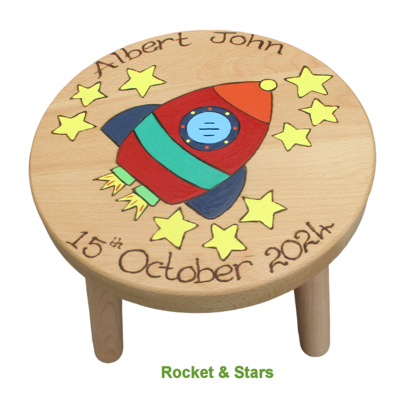 New for April 2025, this traditional 3 legged round stool is made from solid beech wood and is a variation our our other stools for boys. We can personalise the stool making it a great keepsake gift for a new born baby, christening, birthday or any special occasion.
