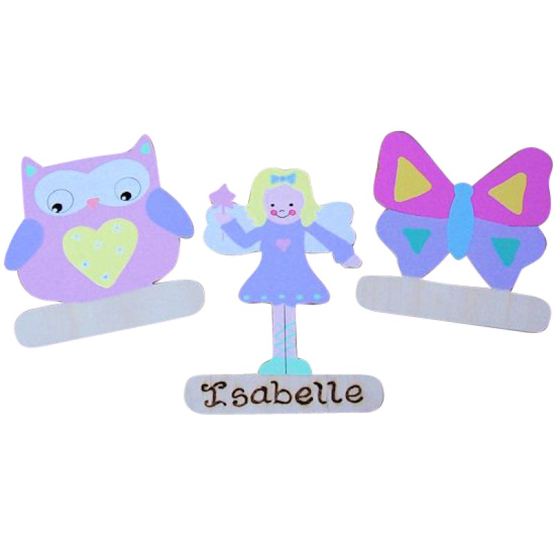 Size of our pastel coloured plaques: Fairy 17cm high x 12.5cm wide; Butterfly 13.5cm high x 12.5cm wide; Owl 14cm high x 12.5cm wide.