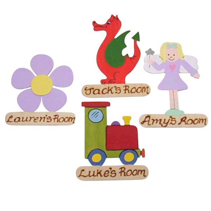 Great wooden door plaques which are available in several designs for girls and boys. These door plaques are hand cut from 3mm birch plywood and then hand painted in bright or pastel colours making each one slightly different and unique.
